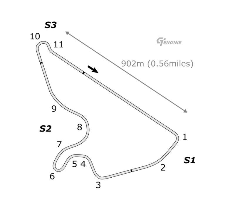 Mit einer Länge von 5,8 Kilometern und einem Höhenunterschied von 74 Metern bietet diese Strecke eine einzigartige Mischung aus technischer Raffinesse und atemberaubender Landschaft. Die Herausforderungen spiegeln sich in der dynamischen Streckenführung wieder. Die Charakteristik der Strecke zeigt sich in den komplexen Kurvensequenzen mit insgesamt 17 Kurven. Kleine Fehler oder Unachtsamkeiten können schnell bestraft werden.