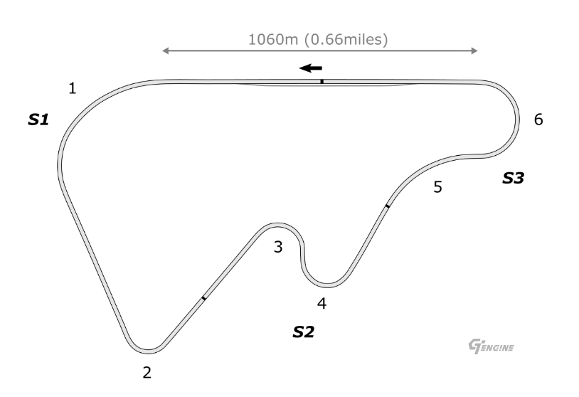 Die längste Gerade der Strecke erstreckt sich über beeindruckende 1.060 Meter, was den Fahrern reichlich Gelegenheit bietet, Höchstgeschwindigkeiten zu erreichen und das volle Potenzial ihrer Fahrzeuge auszuschöpfen. Mit einem moderaten Höhenunterschied von 8,5 Metern und insgesamt 6 Kurven bietet der High Speed Ring eine Streckenführung für hohe Geschwindigkeiten.